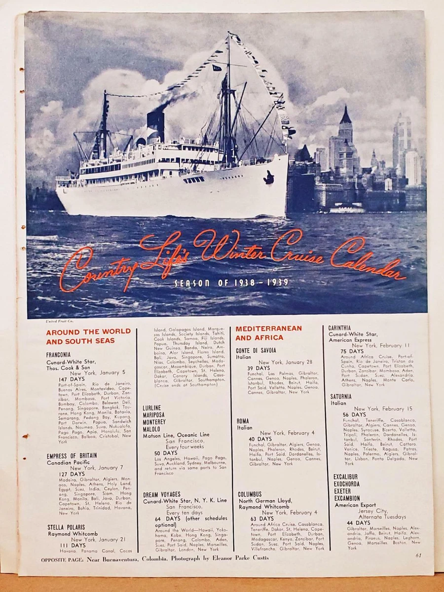1938 Winter Cruise Calendar Photos Maps Travel Liners Ships