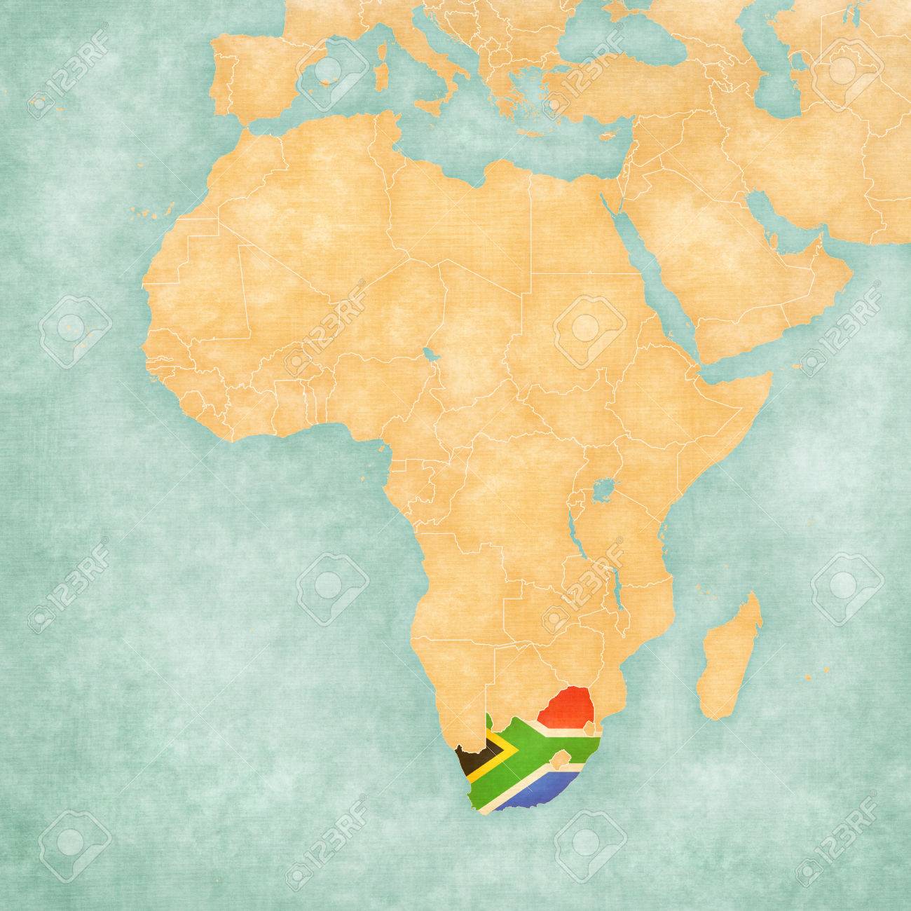 South Africa (South African Flag) On The Map Of Africa. The Map Is
